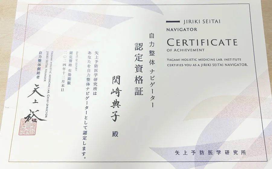 自力整体ナビゲーター認定証