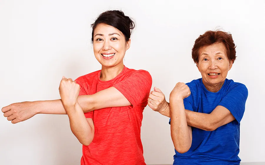 身体を激しく動かすこともないので、どなたでも何歳からでも気軽にご参加いただけます。「身体が固い」、「コリや痛みが強い」といった方でも大丈夫。ひとりひとりの身体の状態に寄り添い、指導いたします。